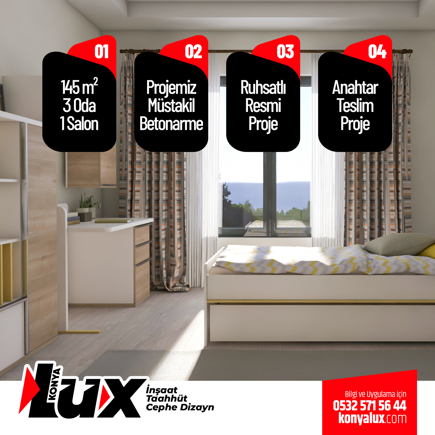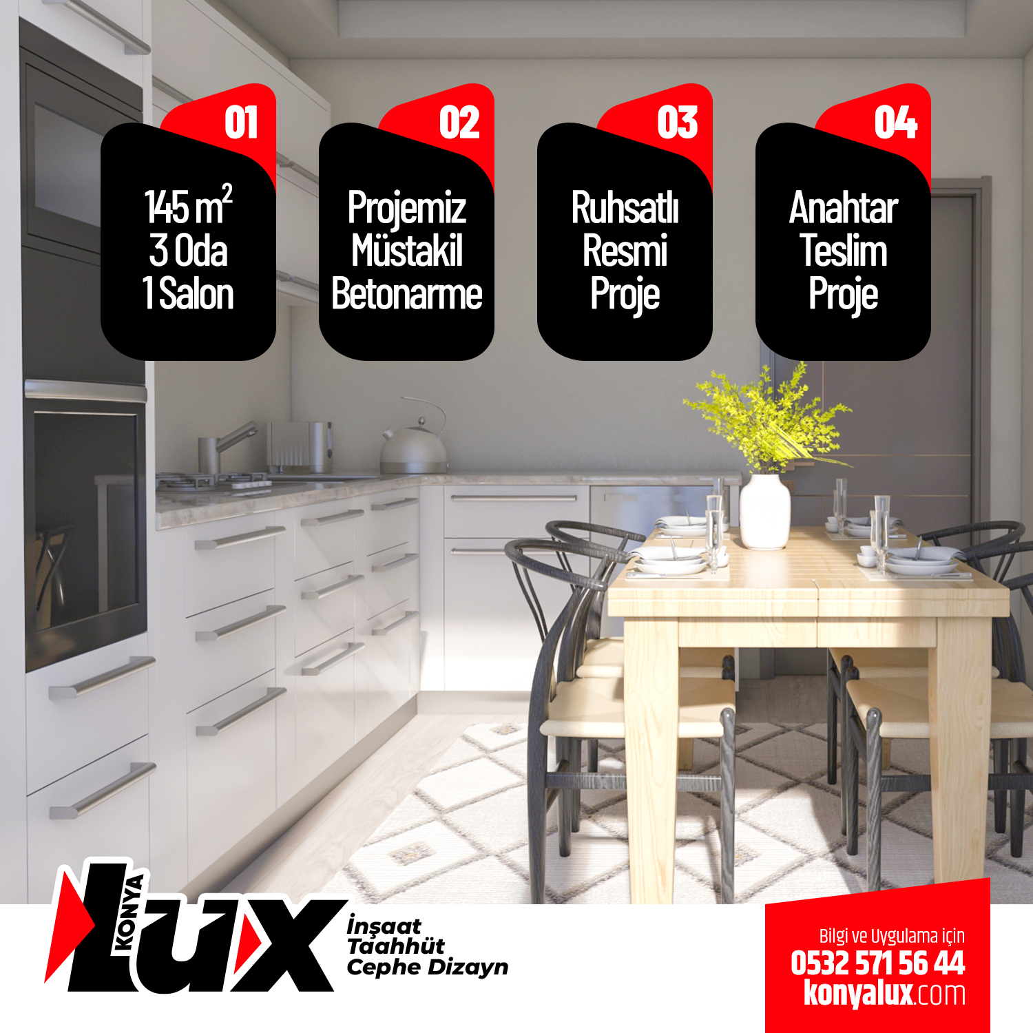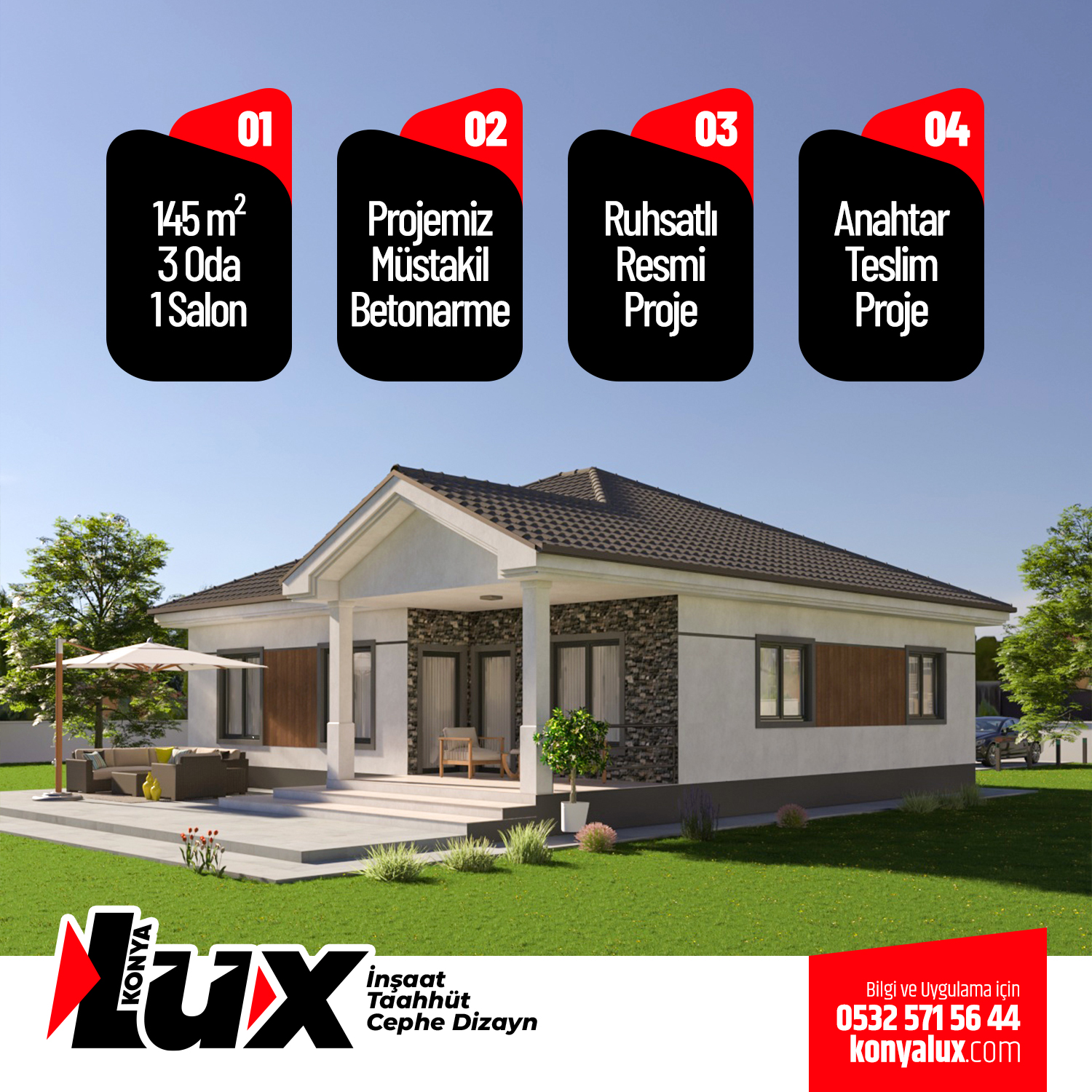 NOT: LÜX İnşaat bu uygulamanın koşullarını ,özelliklerini ve fiyatını değiştirme hakkına sahiptir.