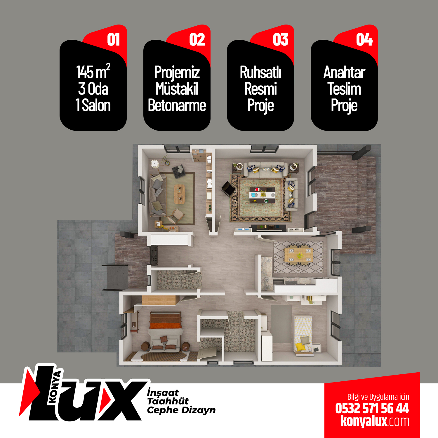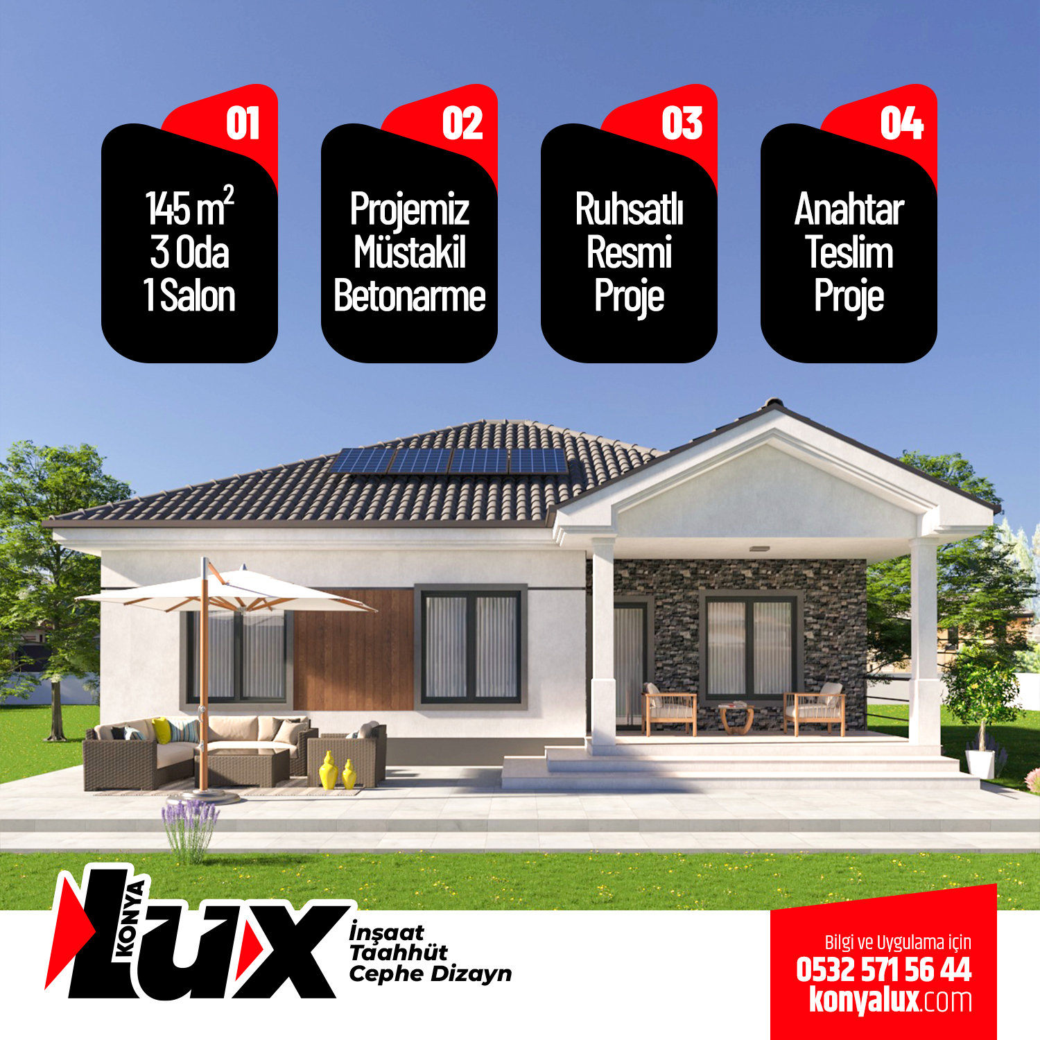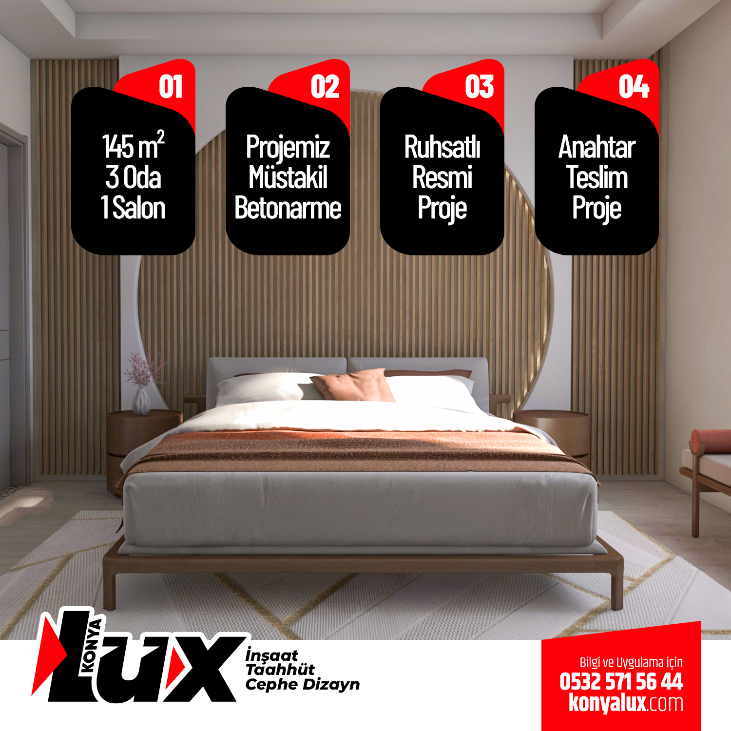 NOT: LÜX İnşaat bu uygulamanın koşullarını ,özelliklerini ve fiyatını değiştirme hakkına sahiptir.